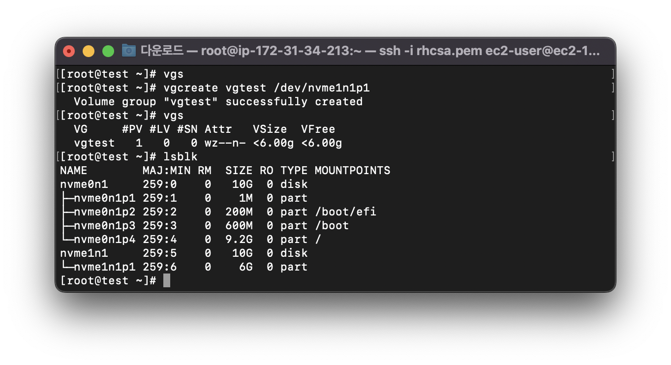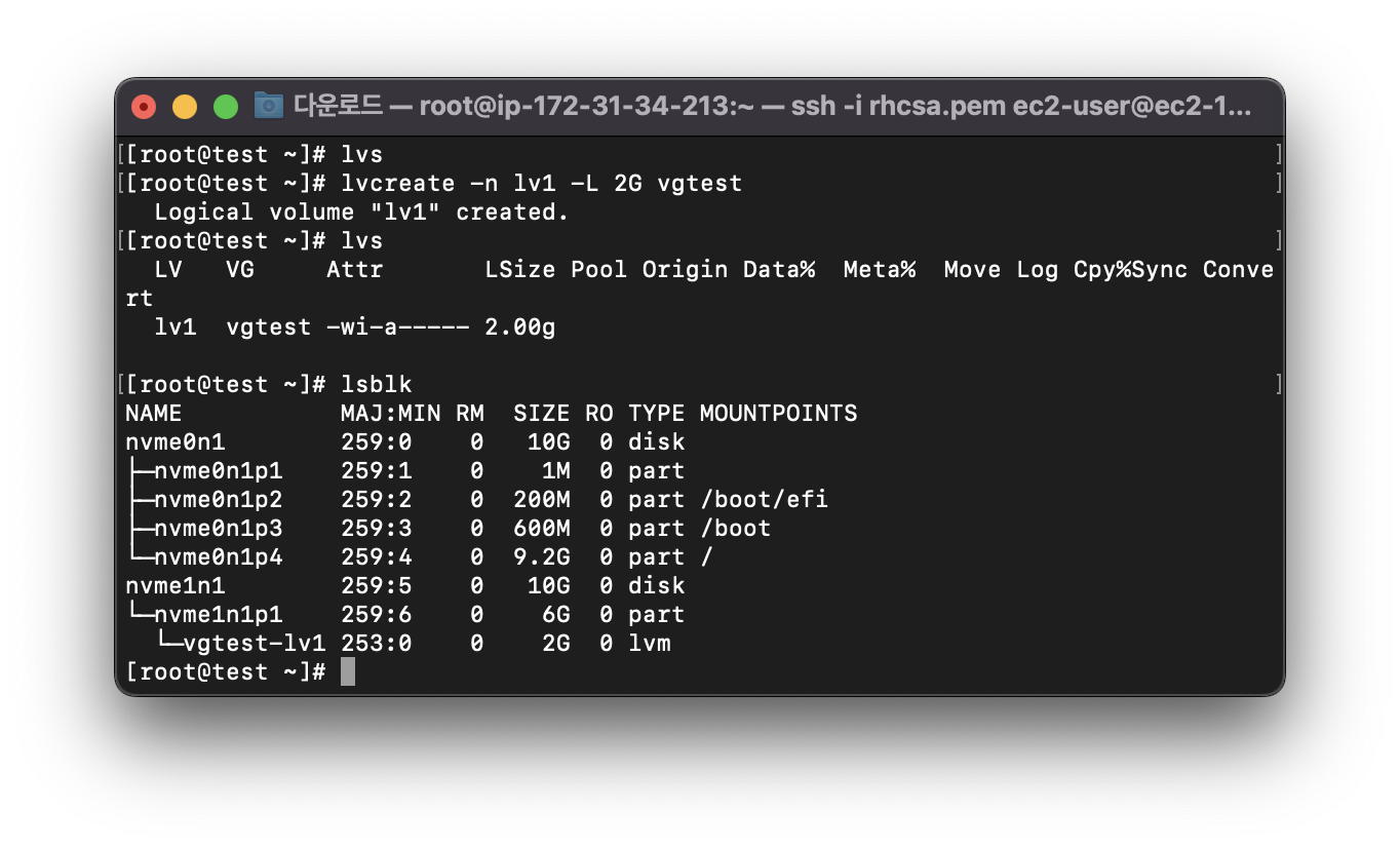 - 논리볼륨 생성 → 볼륨(파티션) 생성