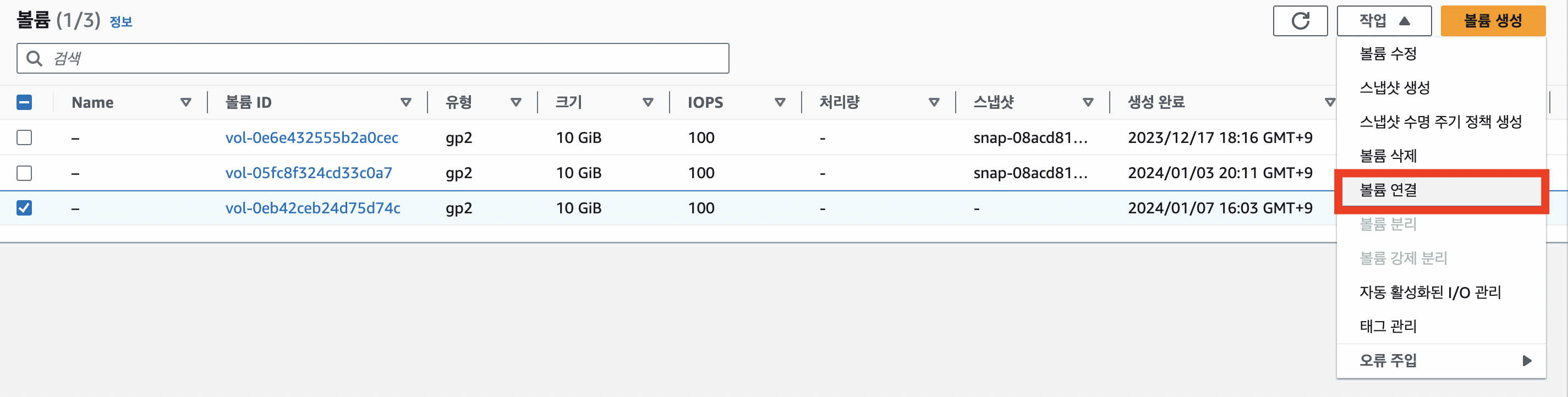 4. 만들어진 볼륨 클릭 > 볼륨연결
