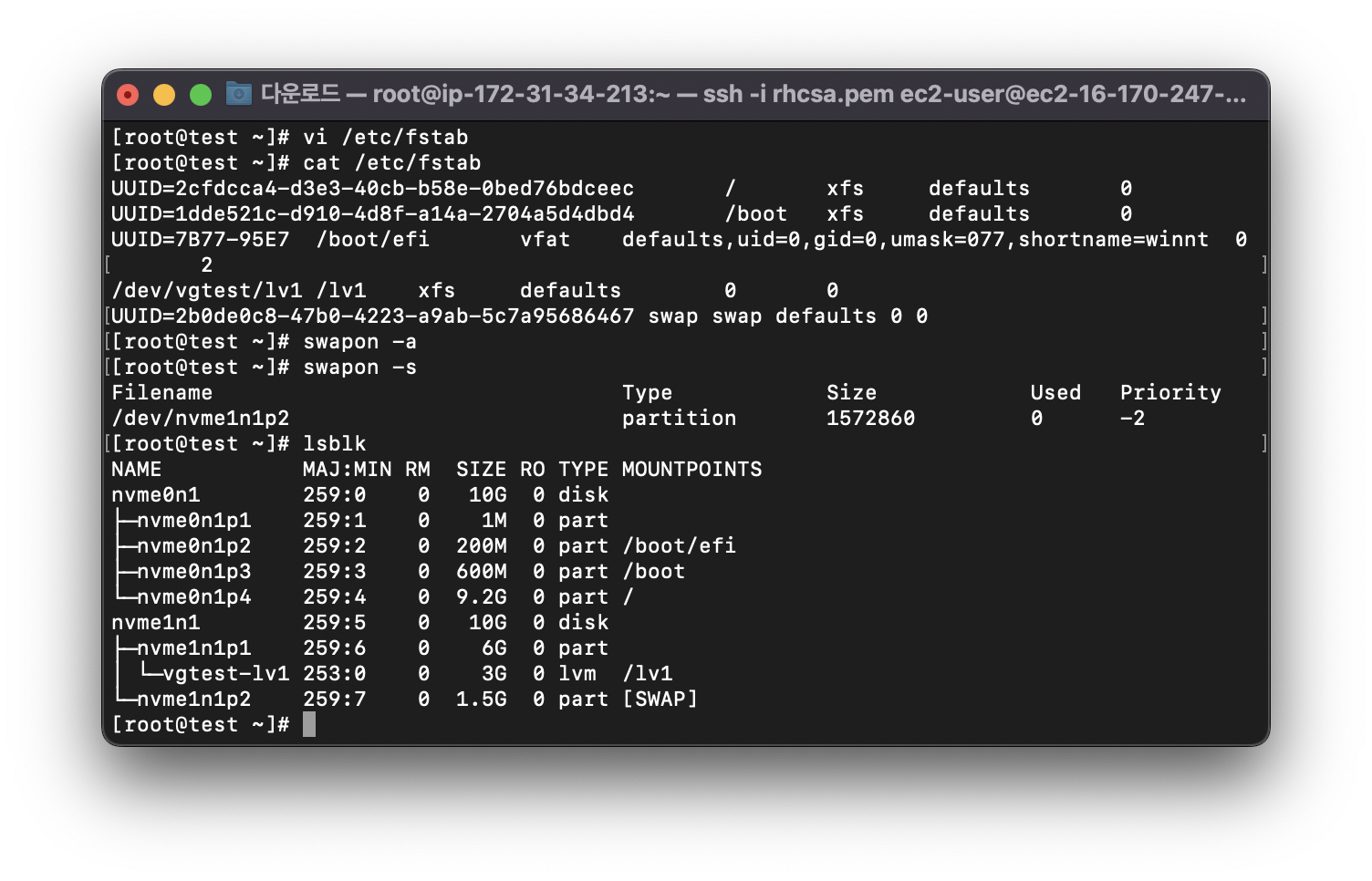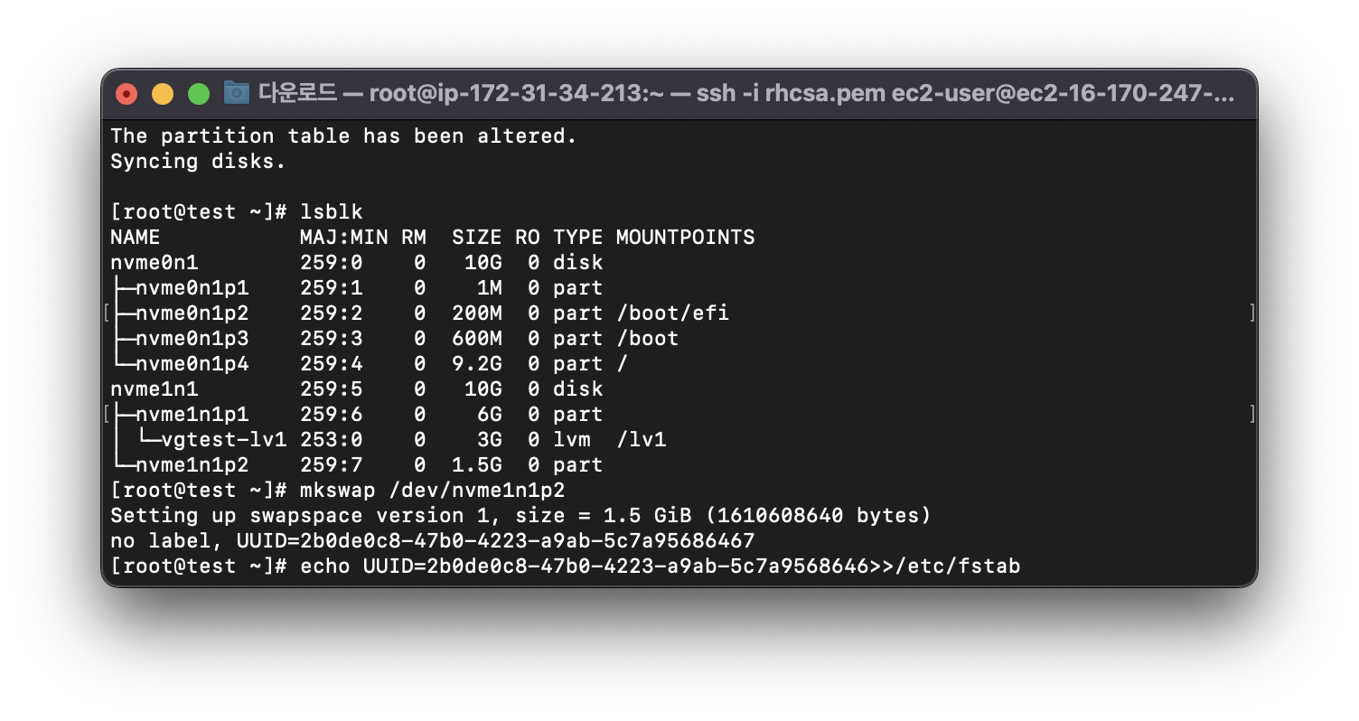 <테스트 환경>- nvme1n1에 swap 1.5G 추가