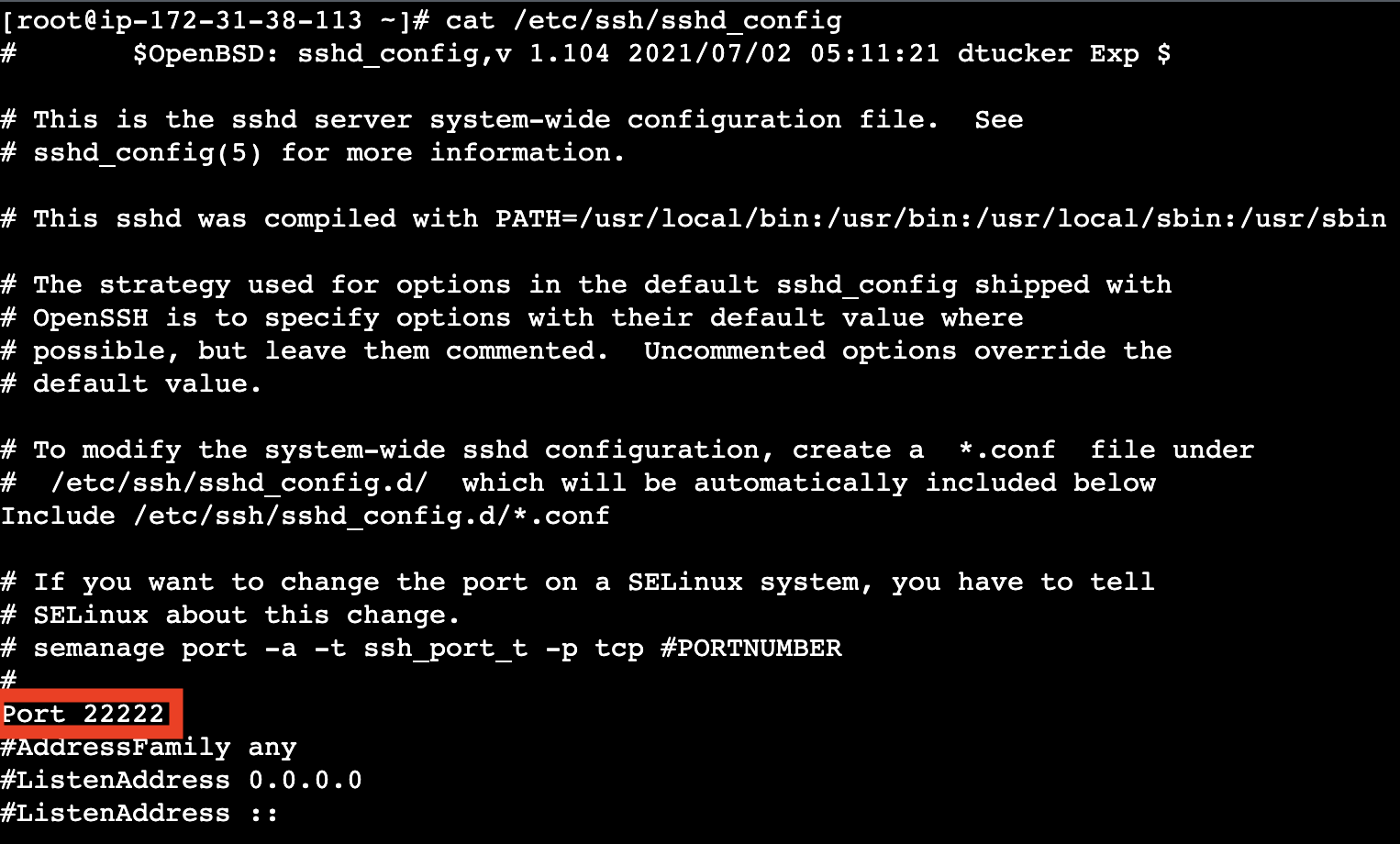 2. /etc/ssh/sshd_config 설정 변경 -> Port를 원하는대로 바꿔줌