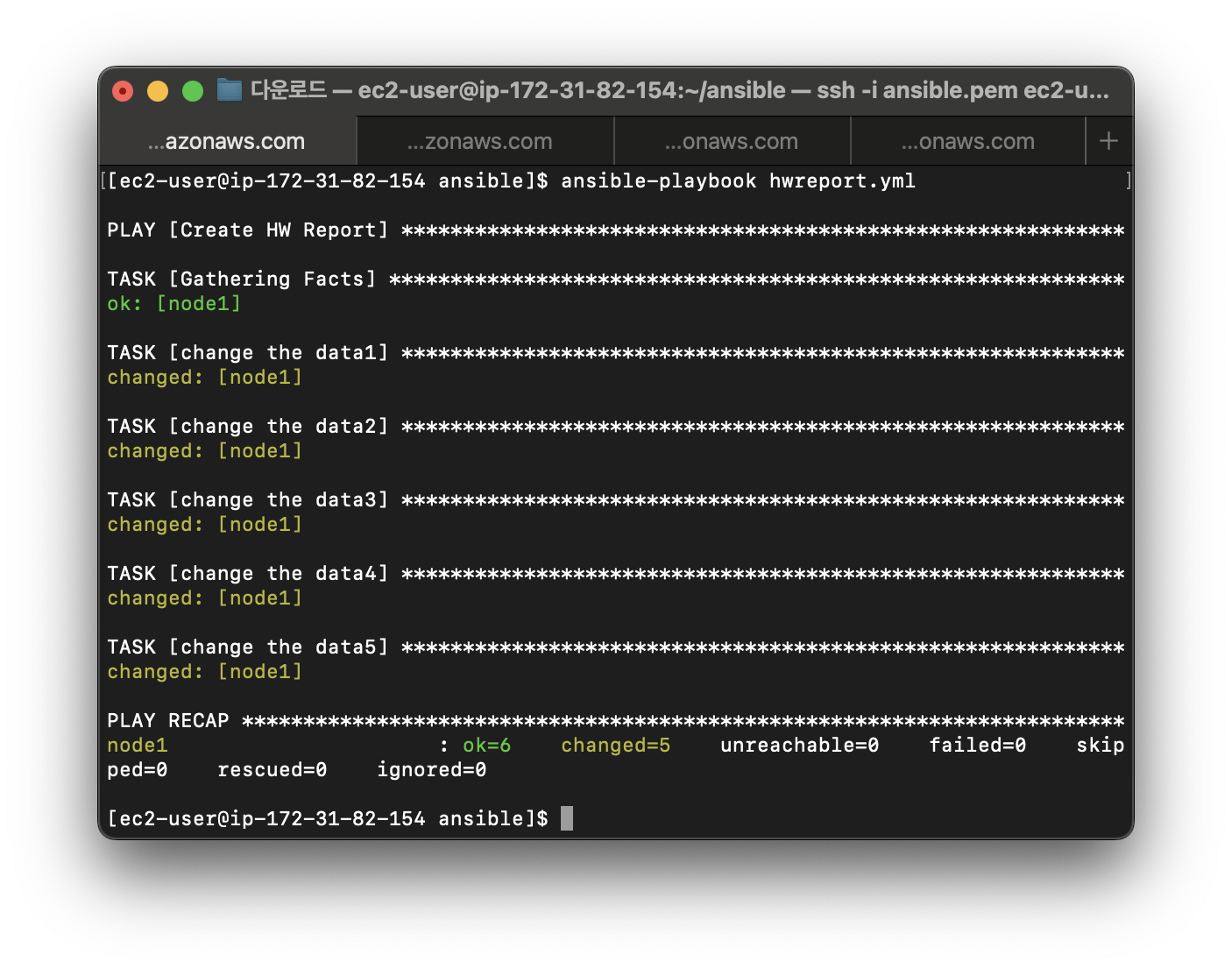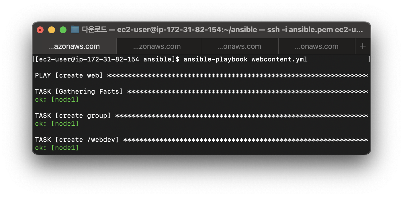 2. playbook 생성 : 위에 답과 동일하게 생성 및 실행