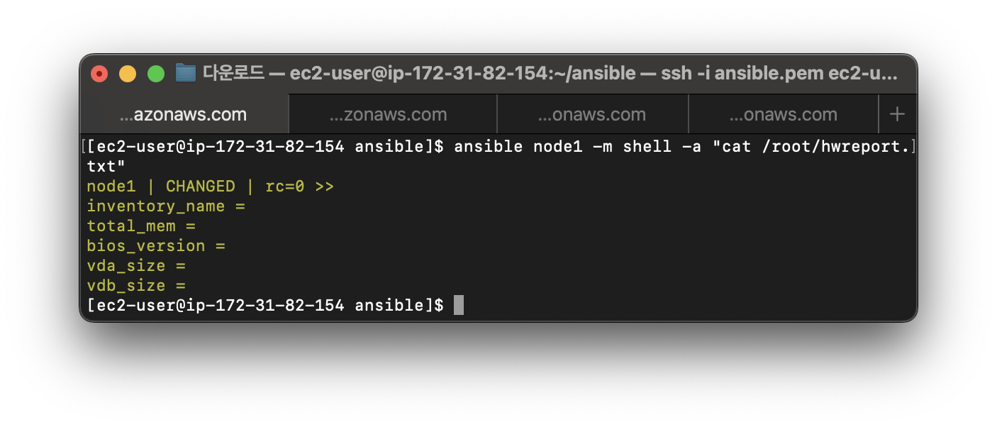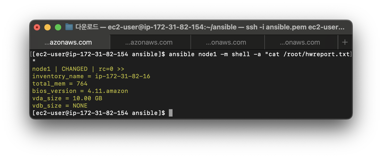 ansible node1 -m shell -a "cat /root/hwreport.txt"