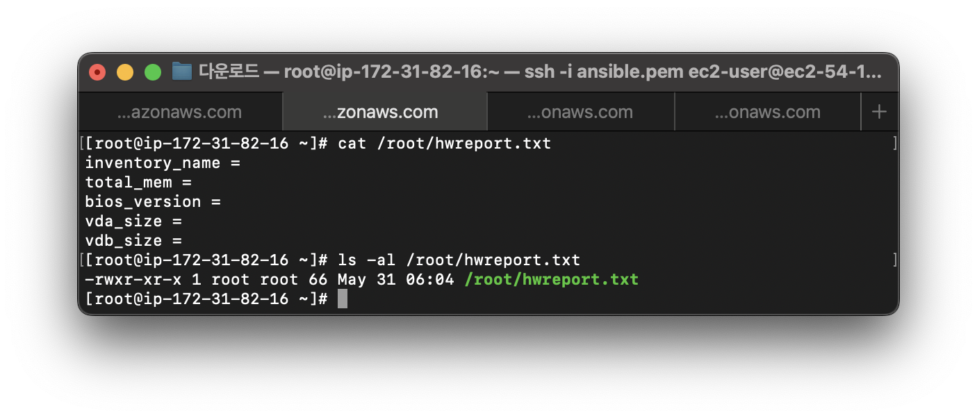 ansible all -m shell -a "cat /root/hwreport.txt"