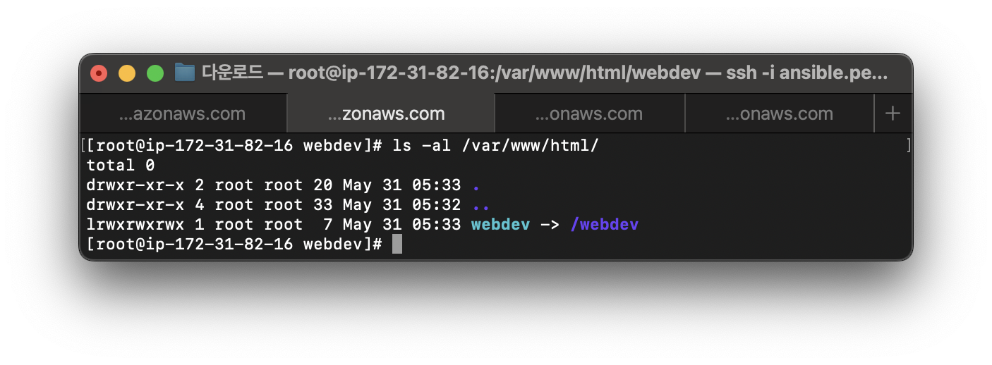 심볼릭 링크 /var/www/html/webdev를 /webdev로 생성하세요.