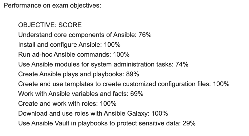 SSH를 두개 띄워놓고 한쪽에는 ansible-doc을 열어 암기하지 않아도 풀 수 있도록.. 세팅 후 시험을 쳤다.